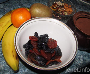 - 1 чашка кураги (лучше сушеный урюк, можно добавить немного изюма и чернослива или фиников),