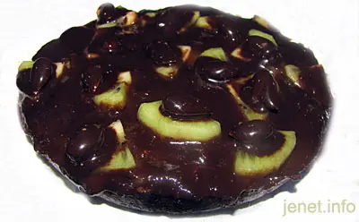 Украсить можно кокосовой стружкой или тертыми орехами. А можно сделать «шоколадную глазурь» из меда и какао (1 ложечка какао на 3 ложечки меда — хорошенько перемешать, оставить на 20 минут, снова хорошенько перемешать), ею полить торт, выложить еще кусочки фруктов. У меня на киви лежат целые косточки миндаля, покрытые такой же «шоколадной глазурью».