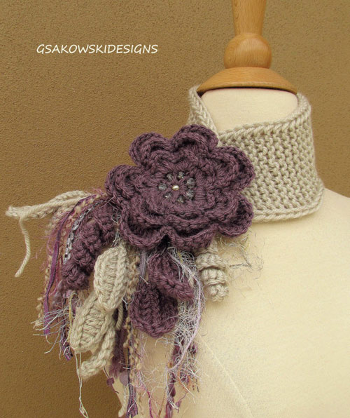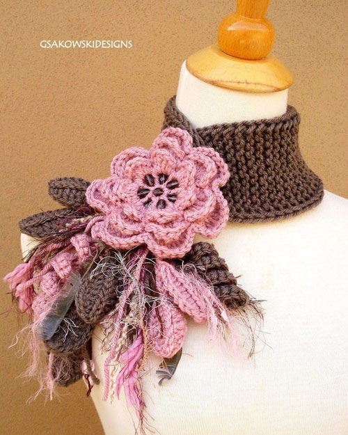 Вязаное украшение шарф с цветком
