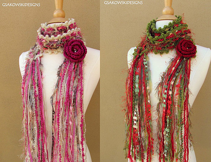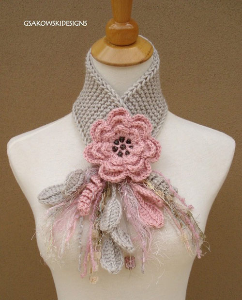 Оригинальные вязаные украшения шарфы с цветами