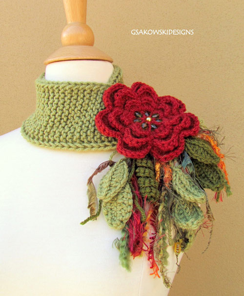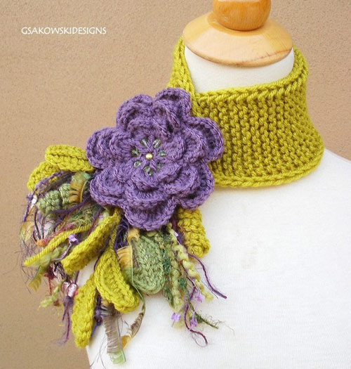 Оригинальные вязаные украшения шарфы с цветами