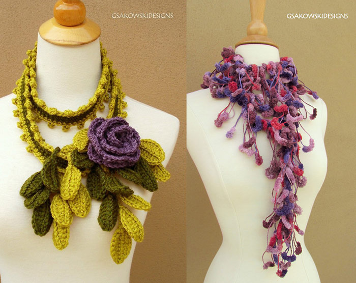 Оригинальные вязаные украшения на шею