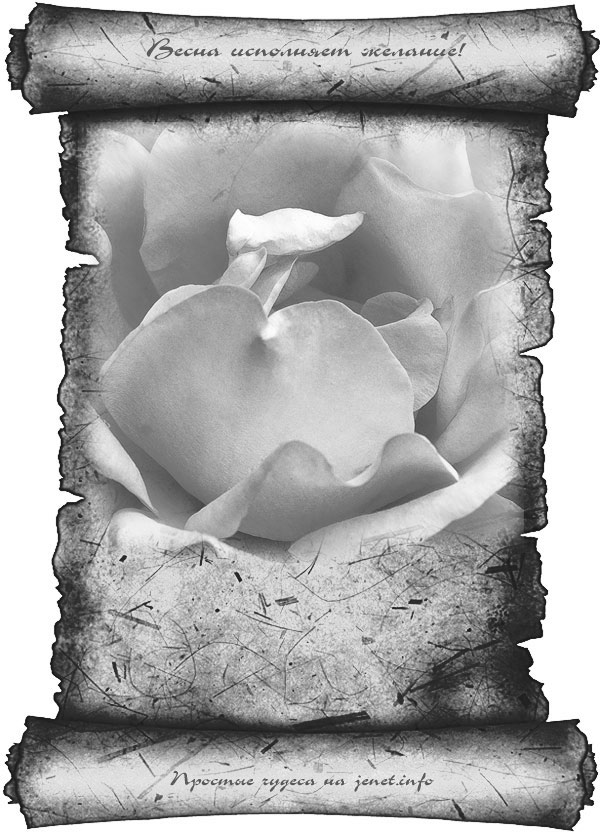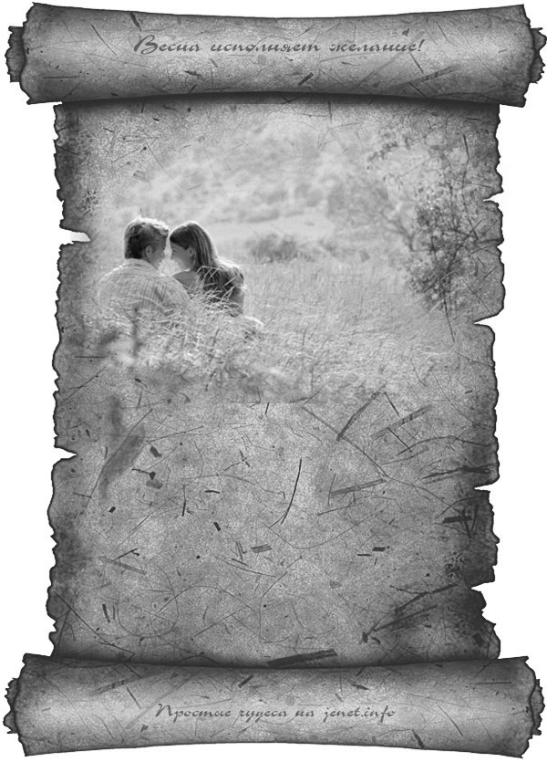 — Открываем открытку в фотошопе или другой программе, где можно вставить текст, добавляем желание на свиток под картинкой, сохраняем в центре рабочего стола или в папке «исполнилось в 2012 году».