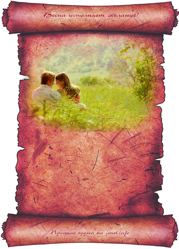 — Открываем открытку в фотошопе или другой программе, где можно вставить текст, добавляем желание на свиток под картинкой, сохраняем в центре рабочего стола или в папке «исполнилось в 2012 году».